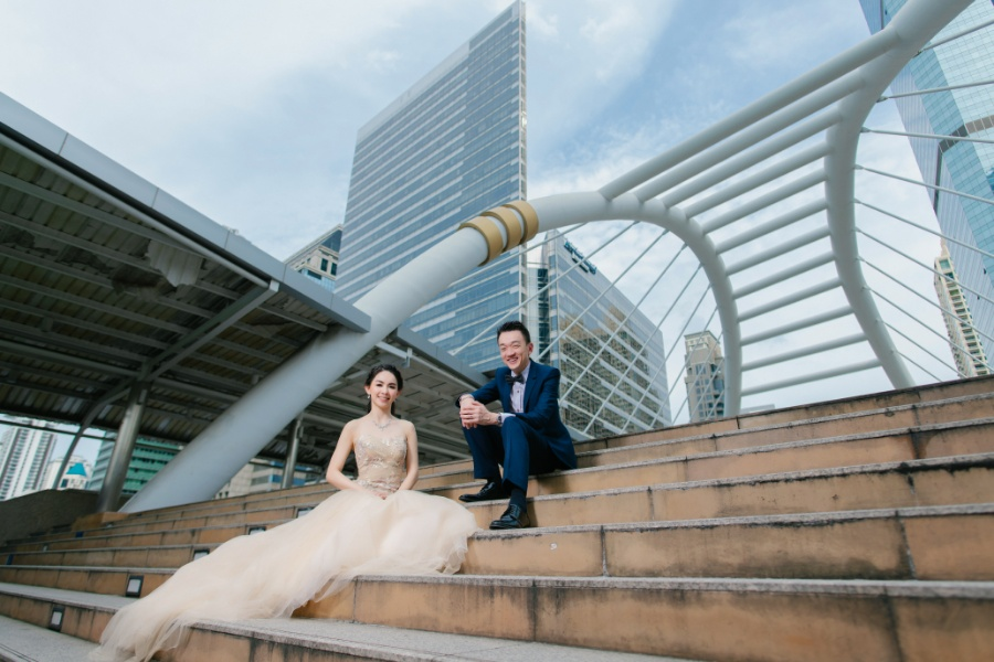 我們首先帶準新人倆到俯瞰整個曼谷地平線的Chong Nonsi BTS 火車站拍攝。著名的唐人街也為我們提供許多漂亮的拍攝背景。