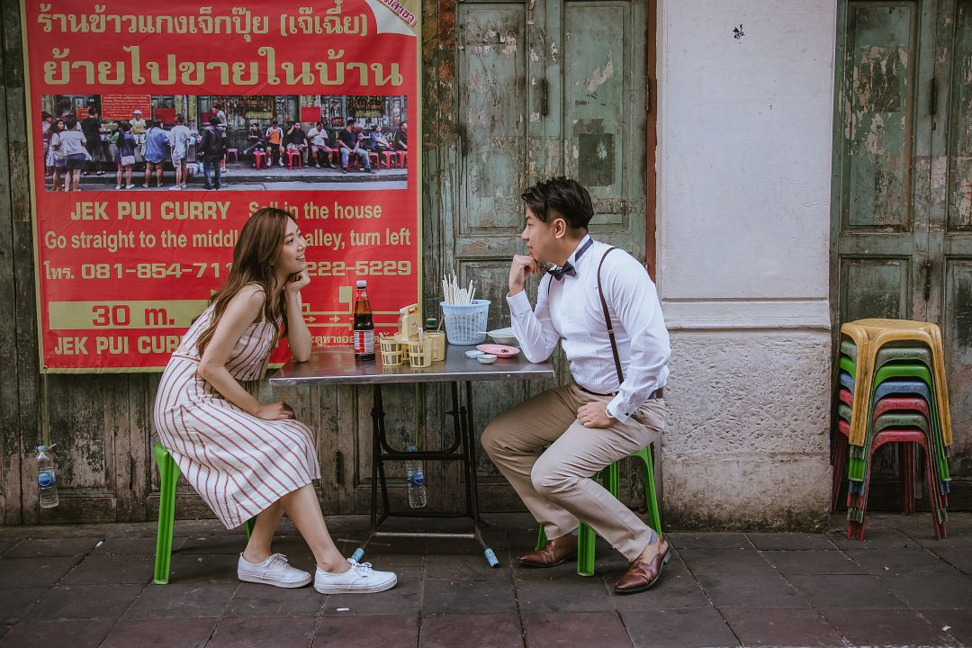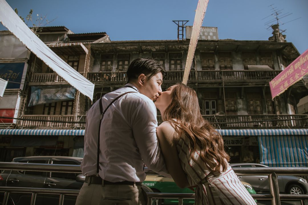 我們的團隊首先帶他們到繁華的唐人街拍攝。再到火車站拍攝一個較優雅風的照片類型,但我們最喜歡的照片還是在巴達雅海灘所拍攝的,因為從照片中就能夠感受到準新人有多麼享受這次的旅拍,也讓我們感到欣慰!