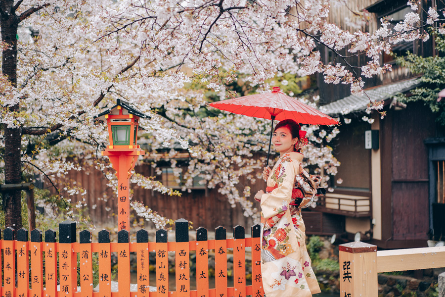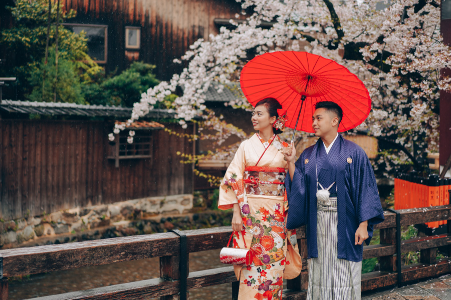 “お花見”(Ohanami),指的就是在櫻花樹下賞櫻花。相信了解日本的人都知道它乃是日本春季的盛事!據說,日本賞花活動原先是在宮庭貴族間的賞花盛宴興起的。隨著時代的變遷,如今已漸漸地滲透到平民中,成為大眾化的事情~ 來自香港的Thiri和Kaung也趁著櫻花季節飛到日本拍攝婚紗照。穿上日本民族的和服,兩人站在櫻花樹下,彷彿像是一對穿梭到了古時候的前世情人。